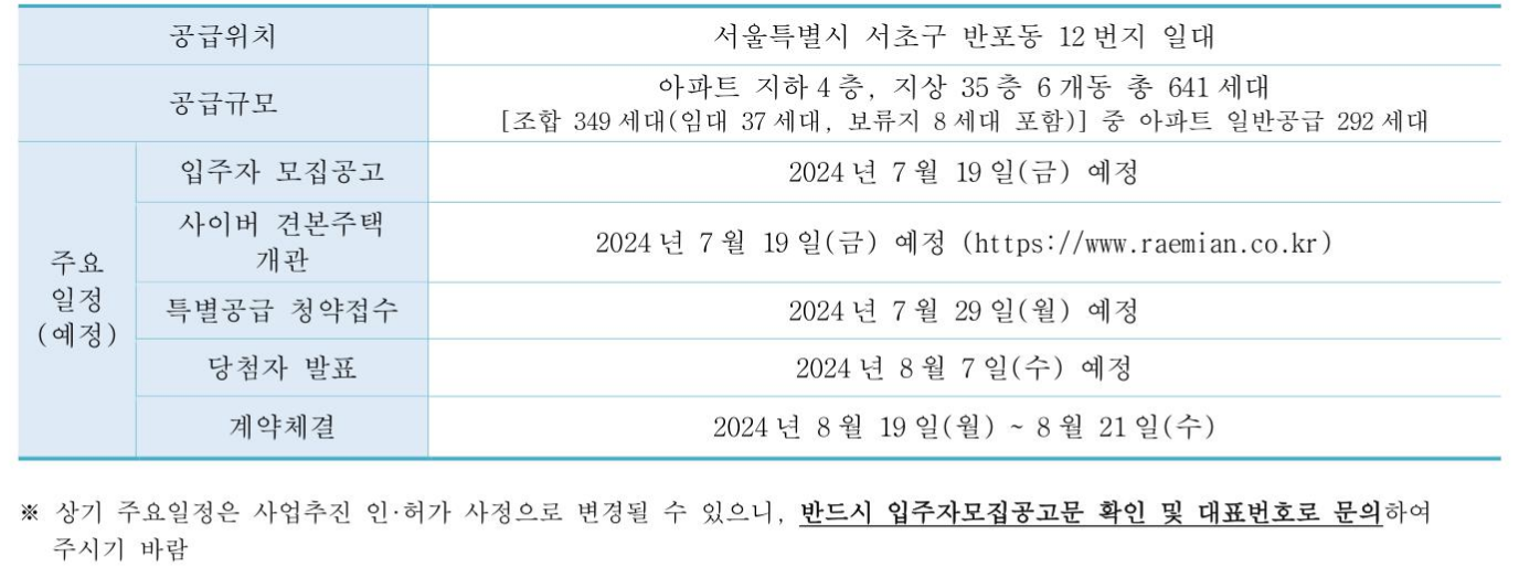| 특별공급 청약접수 | 2024년 7월 29일(월) 예정 | |