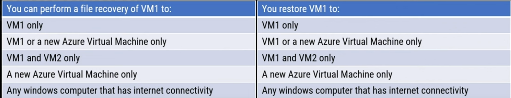 - vm1이 데이터를 암호화하는 랜섬웨어에 감염되었고, vm1의 최신 백업을 복원해야 합니다.