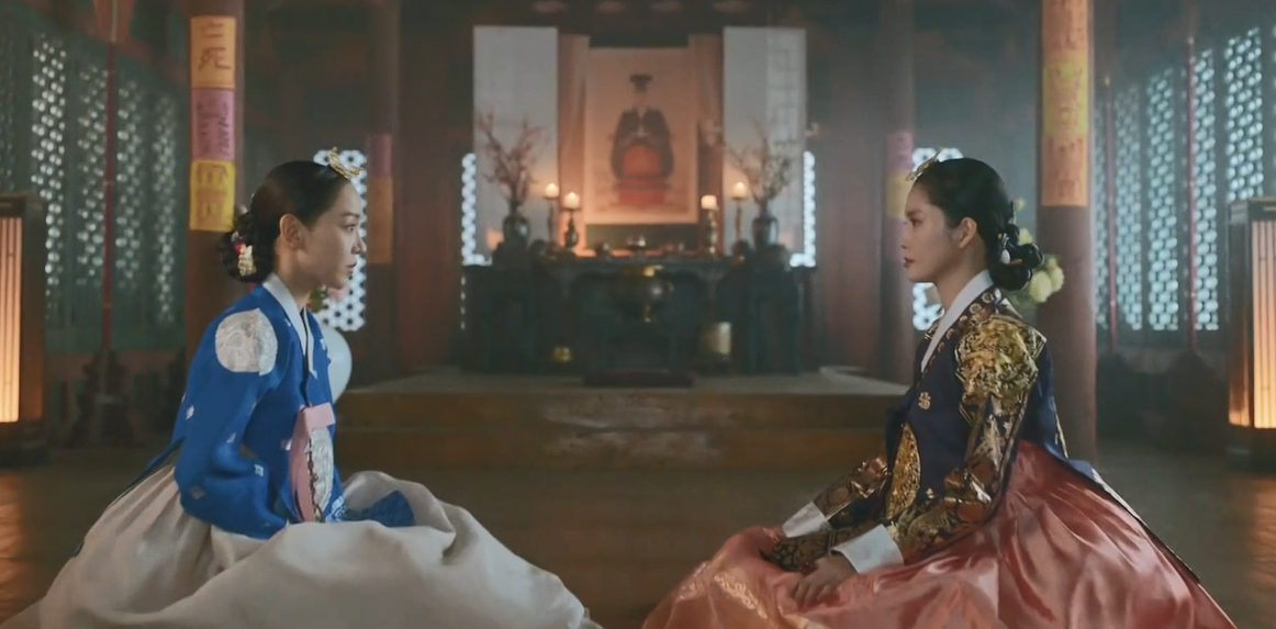 중전앞에서 두 사람의 살기 넘치는 대화가 오가는데요,