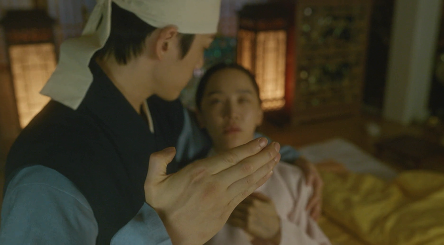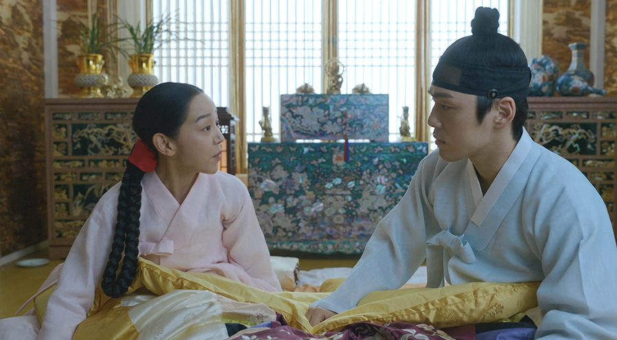 방에 와서 같이 일어나는 김소용과 철종...