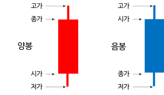 음봉은 시작하는 가격보다 끝나는 가격이 낮은 경우에 음봉이 되는 것입니다.