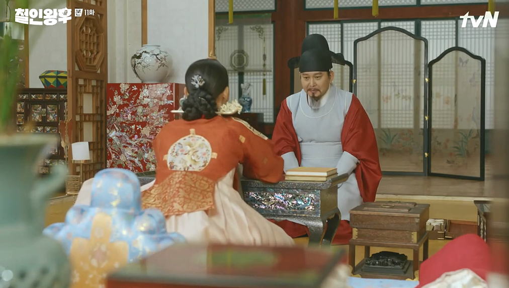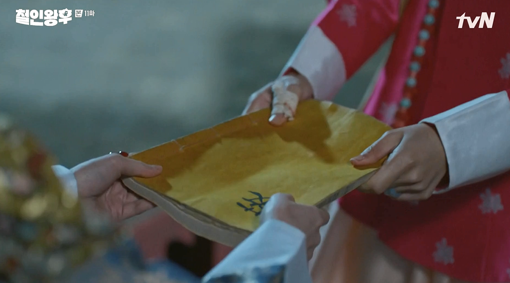 조화진은 대비를 불러 장부를 전하며 중전을 끌어내려 달라고 청합니다.