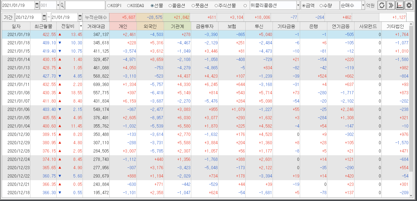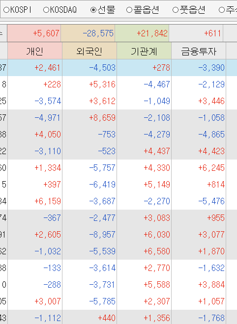 아래는 선물 수급동향입니다.