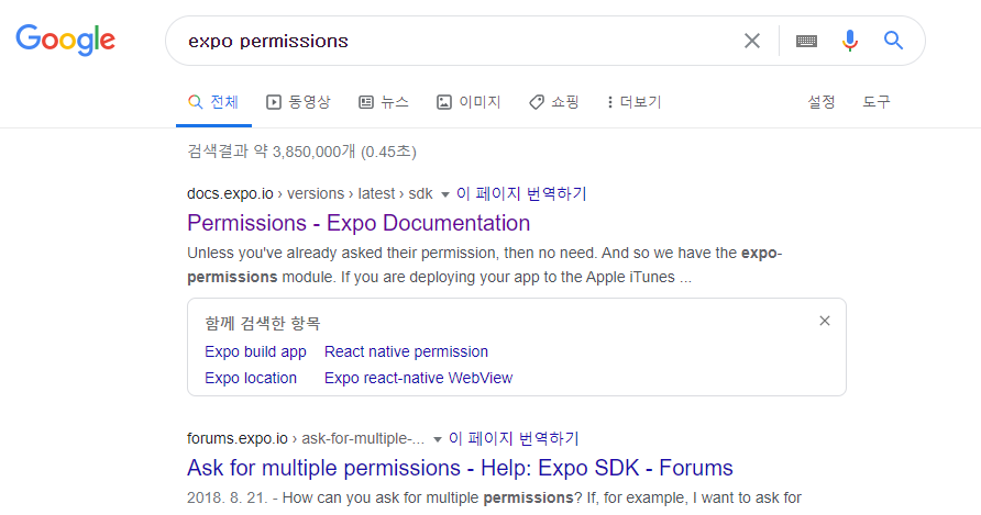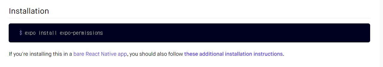 "expo permissions"라고 검색하면 설치할 파일과