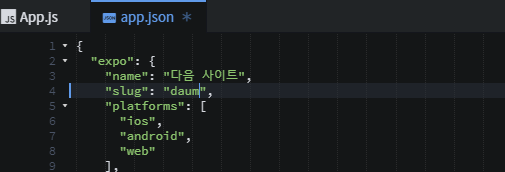다음은 app.jason에 관련 코드를 추가하는 일이다.