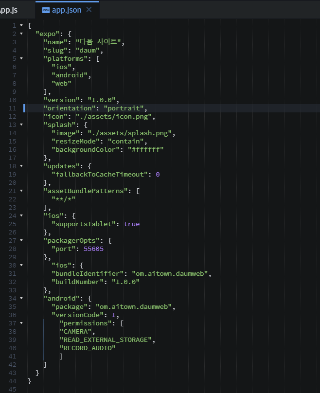app.jason에 아래 코드를 넣어준다.