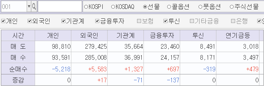 하지만 선물에서는 개인과 외국인의 방향이 반대입니다.