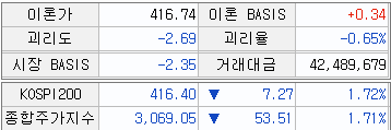 그리고 외국인은 현물을 높은 값에 팔기 위해 선물을 최대한 받쳐주는 모습으로 보입니다.