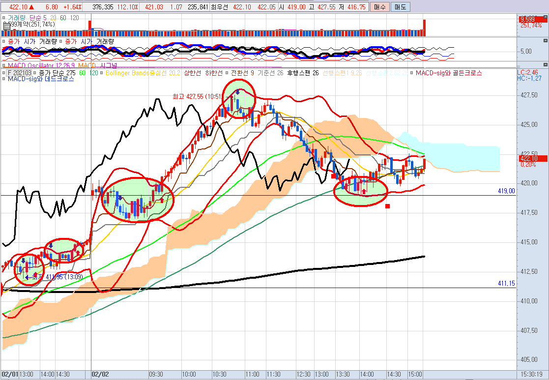 장 막판에는 시초가를 지키며 매수 신호로 마감했습니다.