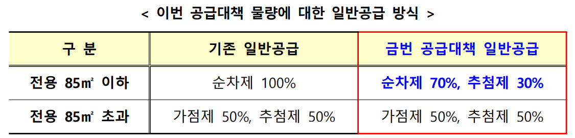 그리고 전용 85제곱미터 이하에도 일반공급 추첨제를 도입한다고 합니다.