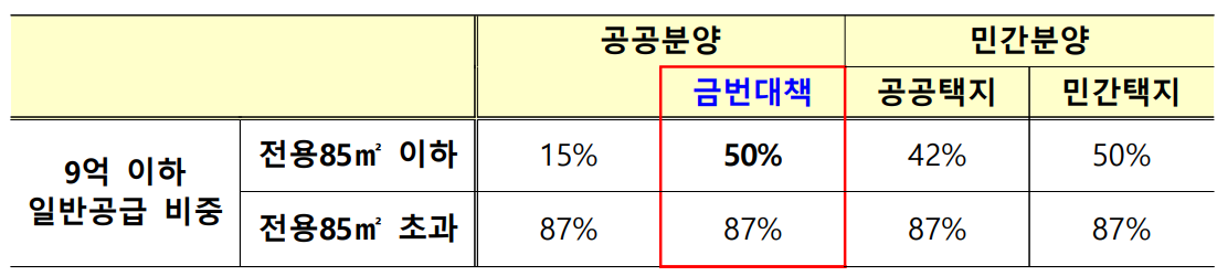오늘 발표된 기준은 일반 공급 비중을 늘린다고 합니다.