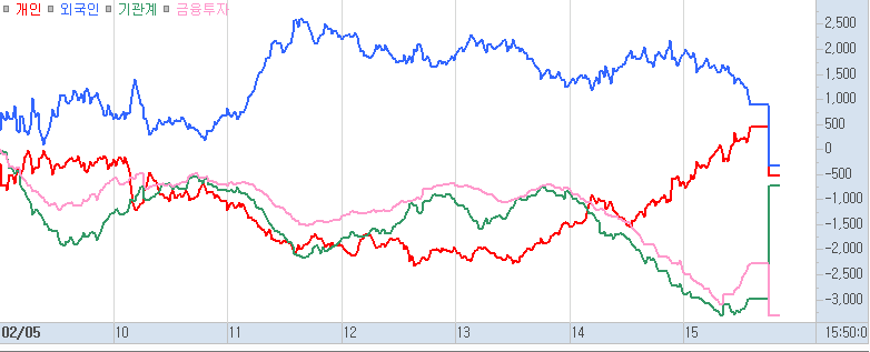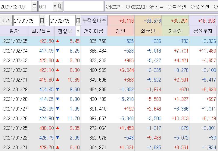 그럼 선물 챠트를 통해서 오늘 세력이 어떻게 움직였는지 보겠습니다.