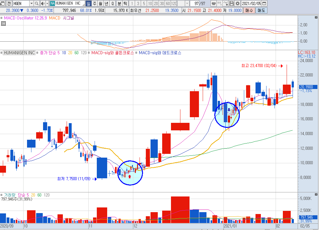 | 매도 신호 발생! 이제 하락하나? 미국 주식 휴머니젠(HGEN) 기술적 분석 2021.2.11 기준 (0) | 2021.02.12 |