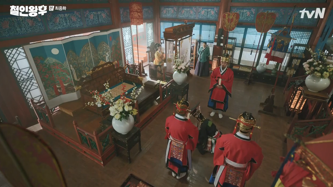 장면이 바뀌어 대왕대비에게 서궁으로 가라는 소식이 전해지고