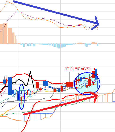 (다이버젼스는 지표의 흐름과 주가가 반대로 가는 현상을 말합니다. )