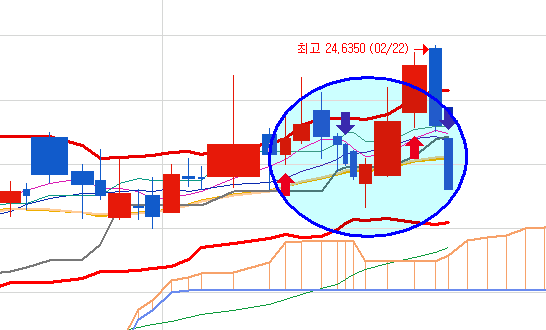 좀 더 살펴보니 1월 5일 일봉상 매도 신호 이후