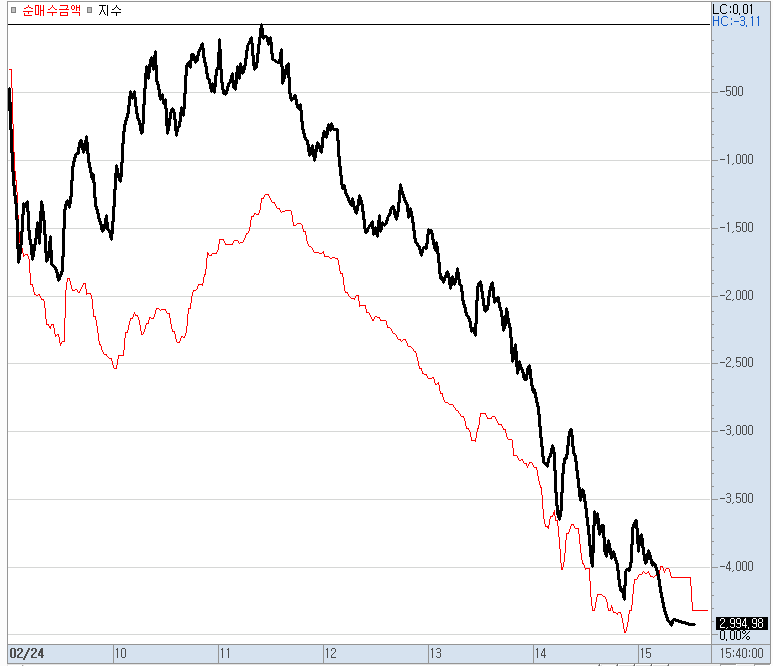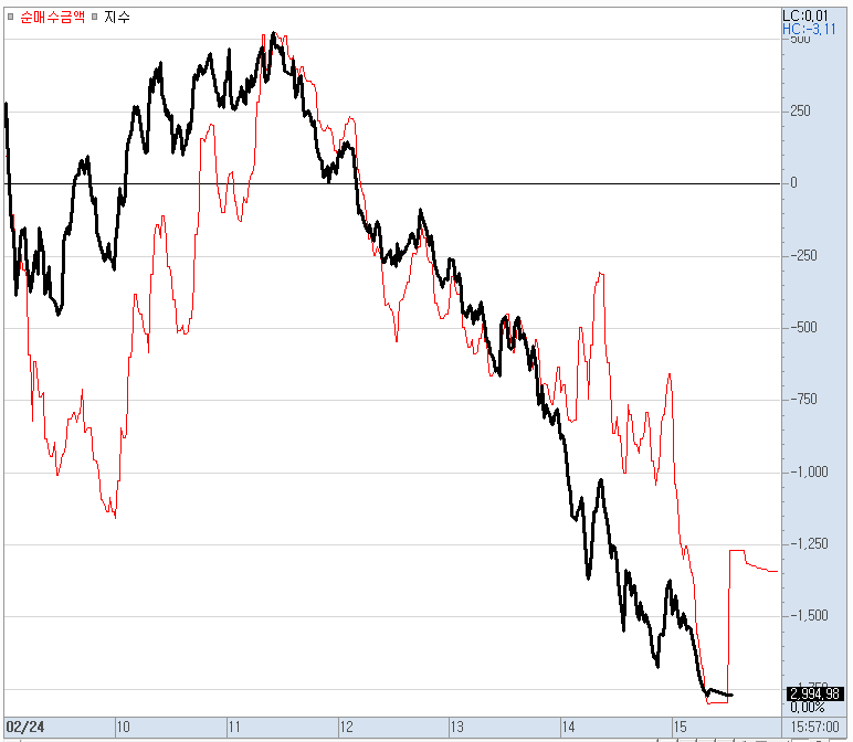 비차익 거래로 장을 끌어 내린 것입니다.