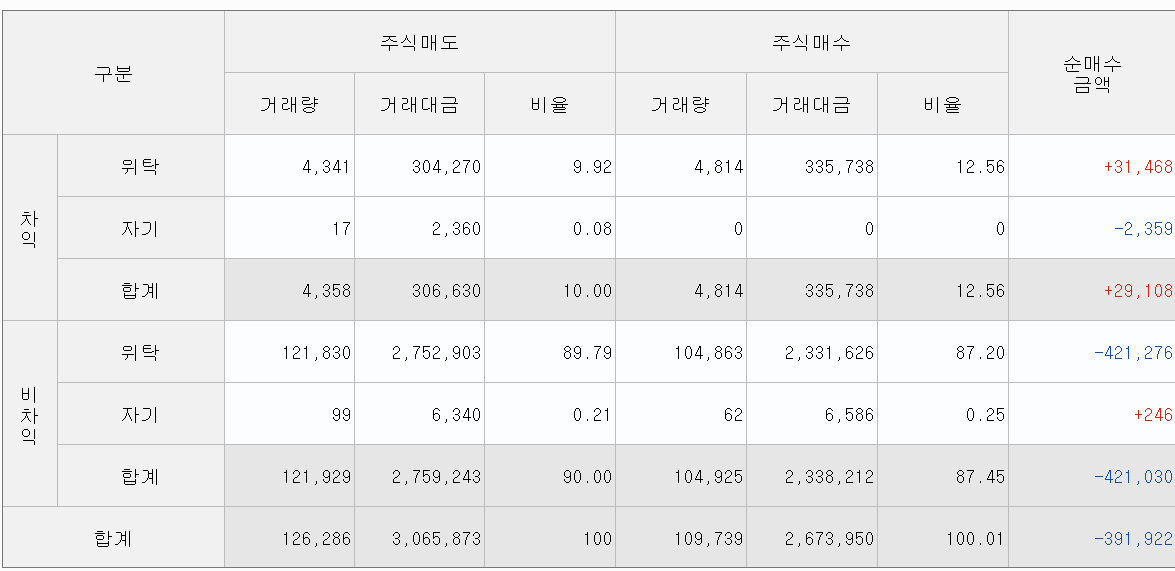 실제 프로그램 매매 현황을 보아도 차익 거래는 오히려 플러스입니다.