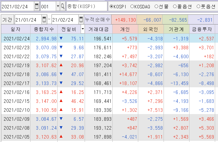| 조정받은 증시, 개인들의 코스피 대량매수! 2021.2.17 마감시황 (0) | 2021.02.17 |