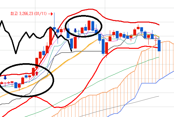 아래는 코스피 일봉입니다.