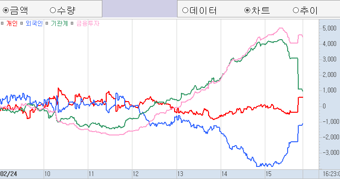 그에 반하여 개인과 기관은 햇지로 밸런스?를 잡은 모습입니다.