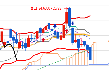 최저가에서 만든 밴드의 상단이 지금으로써는 밴드의 하단이 되고 있는 상황입니다.