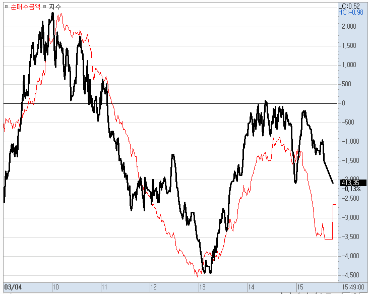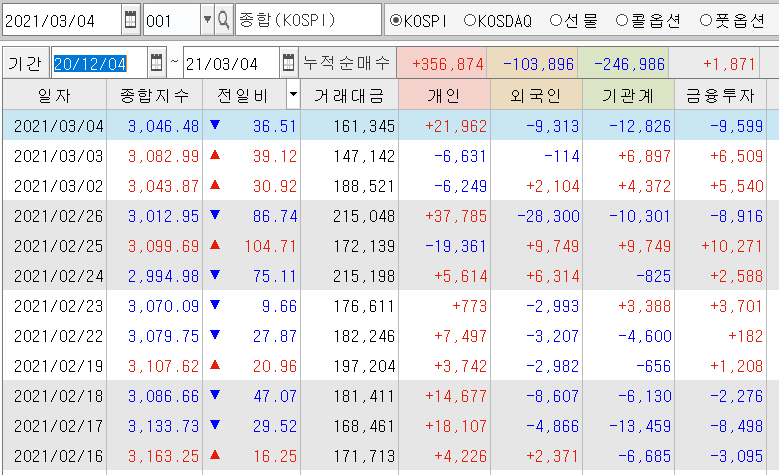 아래 코스피 수급동향을 보시면