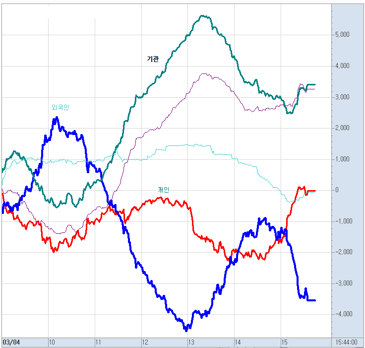 오늘 선물 매수 주체를 보시면 하락의 주범은 외국인들이었습니다.