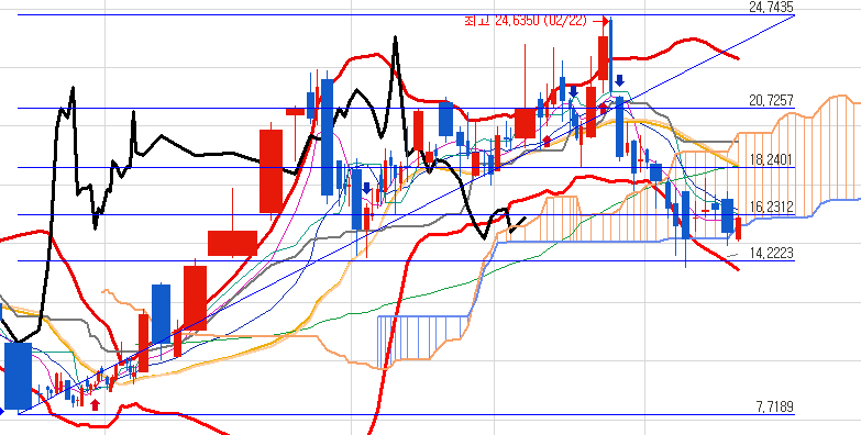 지난 글에서 저기 14달러대를 깨는지가 관건이라고 했습니다.