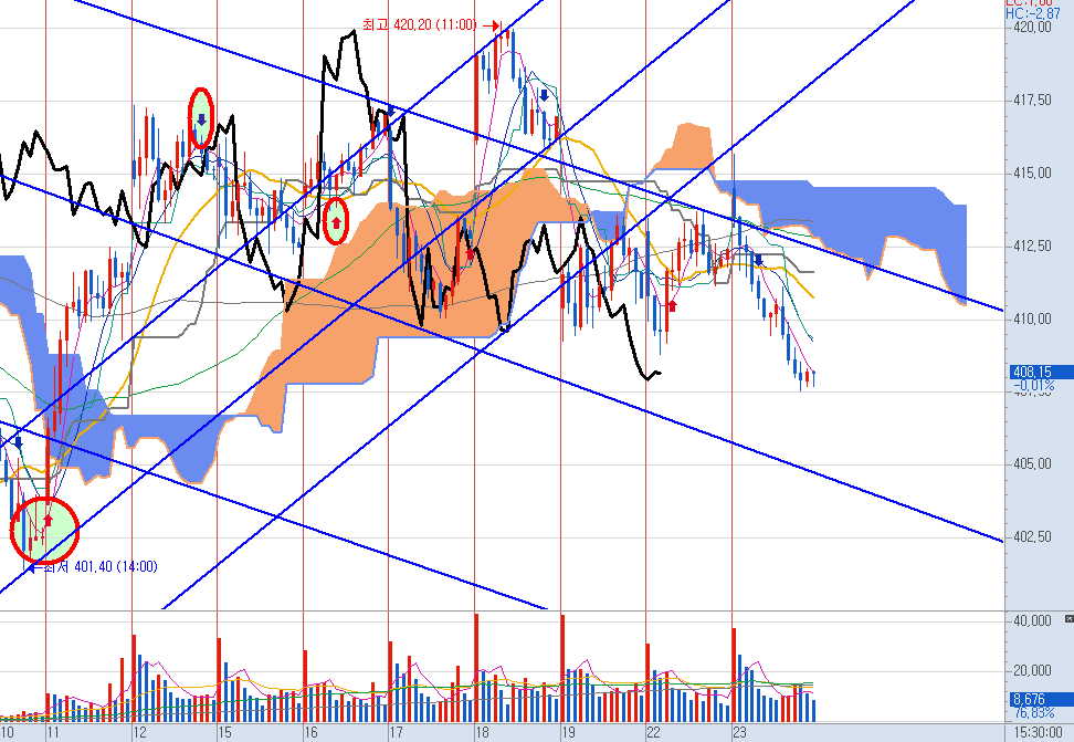 또한, 오늘 두 번이나 세력이 하방으로 밀어버린 곳을 찾을 수 있는데요,