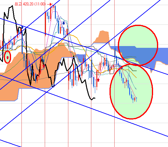 물론 하방으로 밀려서 분봉상 이격이 벌어져 있지만