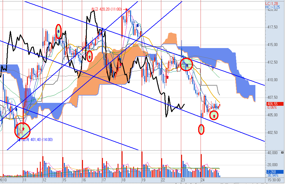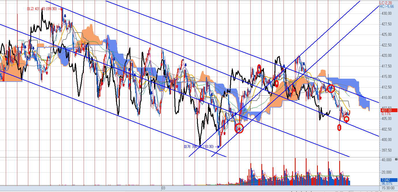 오늘 저점이 왜 저자리인지는 위에서 충분히 설명한 것 같습니다.