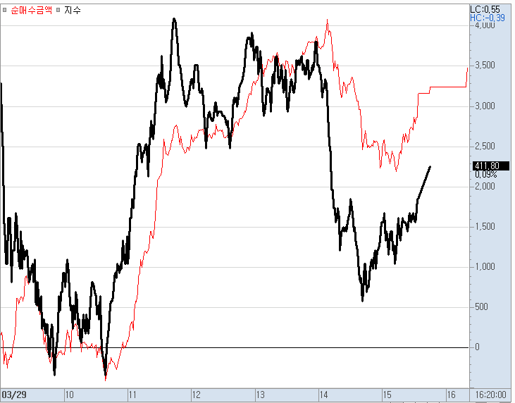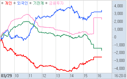 외국인은 내내 매도하다가 갑자기 매수하면서 소량? 매수로 마감했습니다.