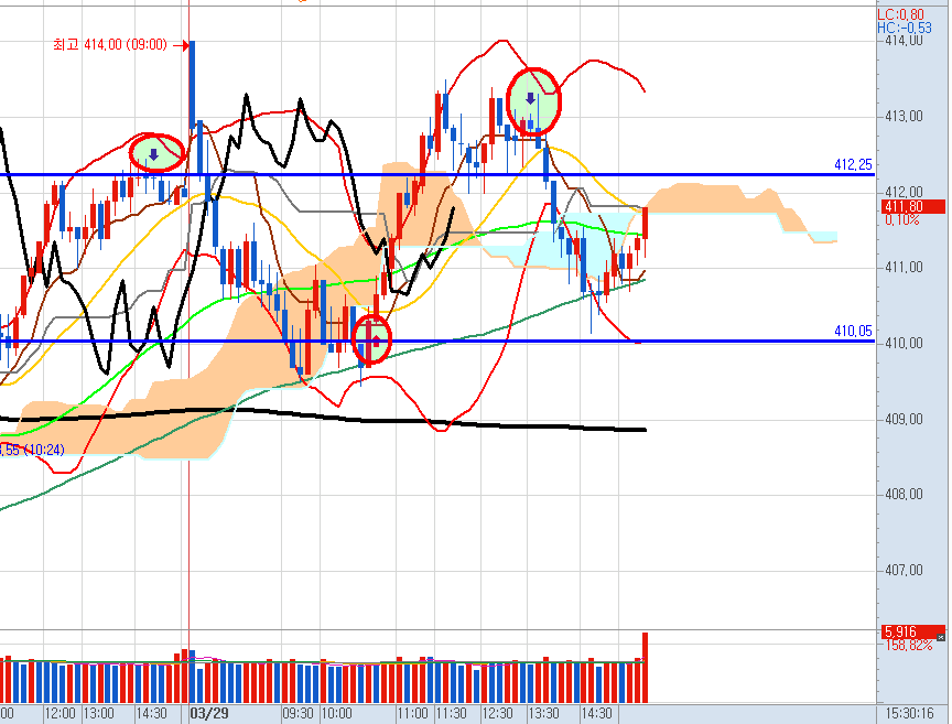 하지만 장초반 만들었던 고가를 갱신하지 못하고 다시 밀리는 흐름이었습니다.
