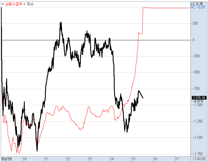 장중 3054까지 상승하기도 했지만 다시 하락하면서