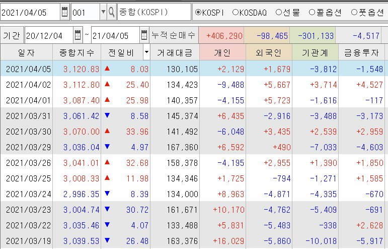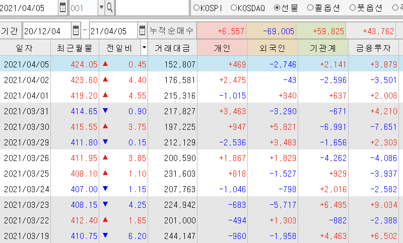 | 만기 앞두고 계속 양매도장 코스피/선물 시장 마감시황 (0) | 2021.04.07 |