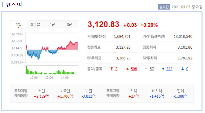| 신호의 힘인가? 상승한 코스피/선물 시장 마감 시황 (2) | 2021.04.02 |