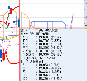 지난 밤 (미국장 4월 6일 마감기준) 휴머니젠은 4.63% 하락한 18.32달러로 마감했습니다.