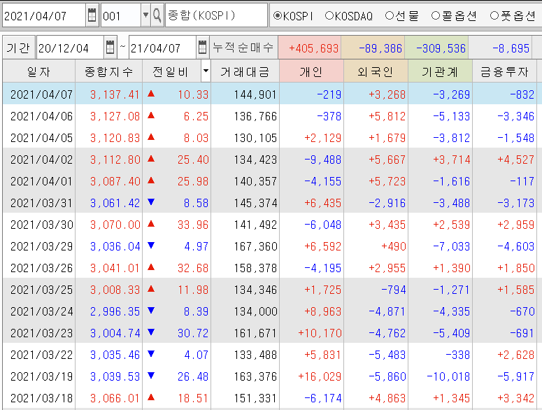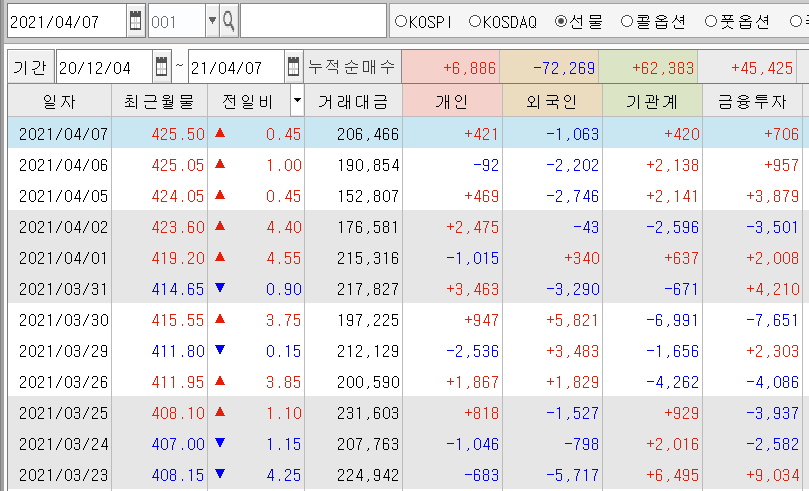 | 코스피 선물시장 장마감 시황 (1) | 2021.04.05 |