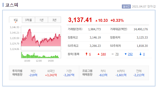 | 코스피/선물 장 마감 시황 (2) | 2021.04.09 |