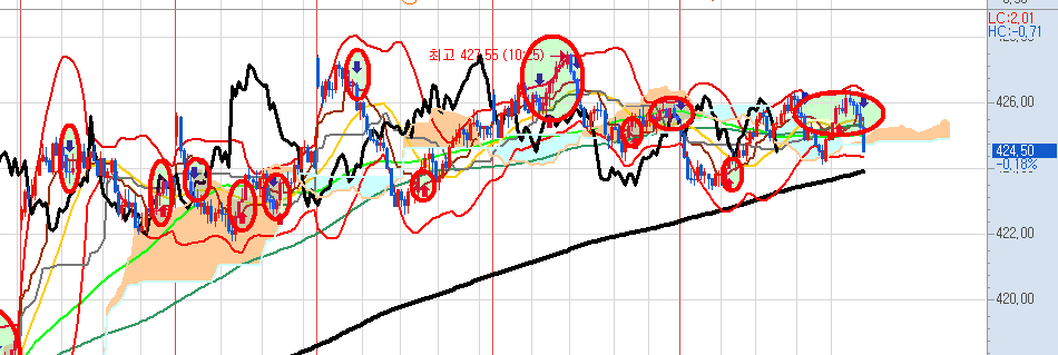 분봉을 보면 오늘은 급등신호로 마감했습니다.