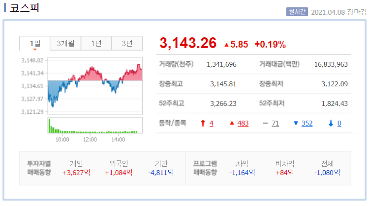 | 코스피/선물 장 마감 시황 (2) | 2021.04.09 |