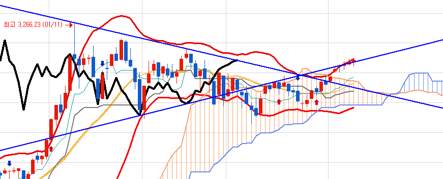 코스피 일봉은 저항을 정말 부드럽게 넘어가고 있습니다