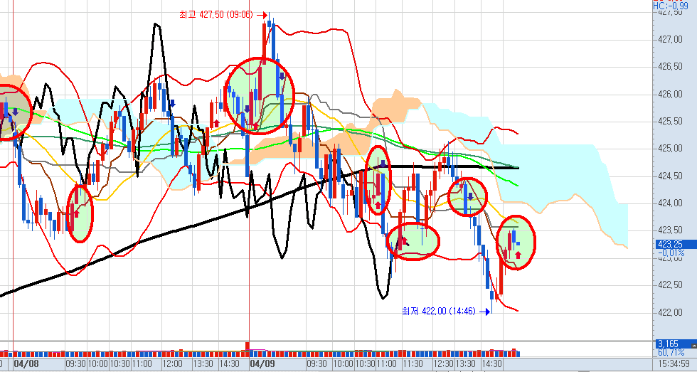 하지만 세력은 이내 매도 신호로 장을 끌어내렸고