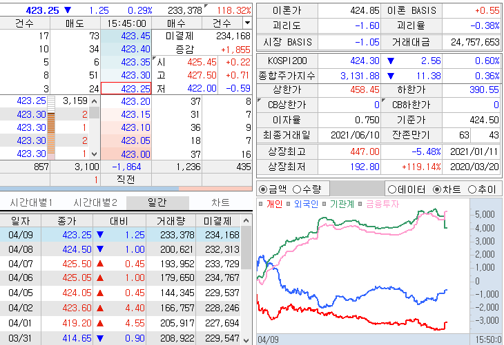 | 만기 앞두고 계속 양매도장 코스피/선물 시장 마감시황 (0) | 2021.04.07 |