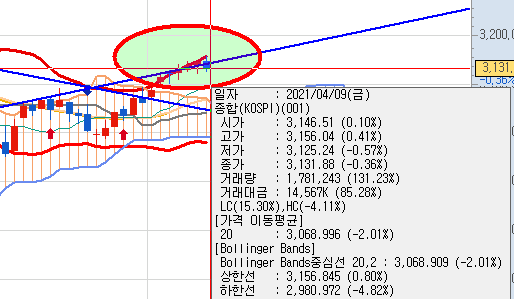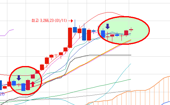 상당기간 추세 위에서 상승하던 것을 생각하면