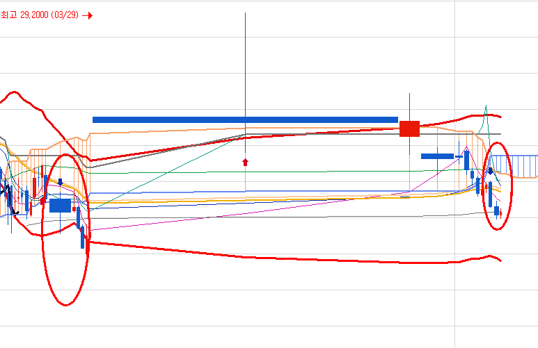 매도 신호 후에 작은 양봉으로 걸친 상황입니다.
