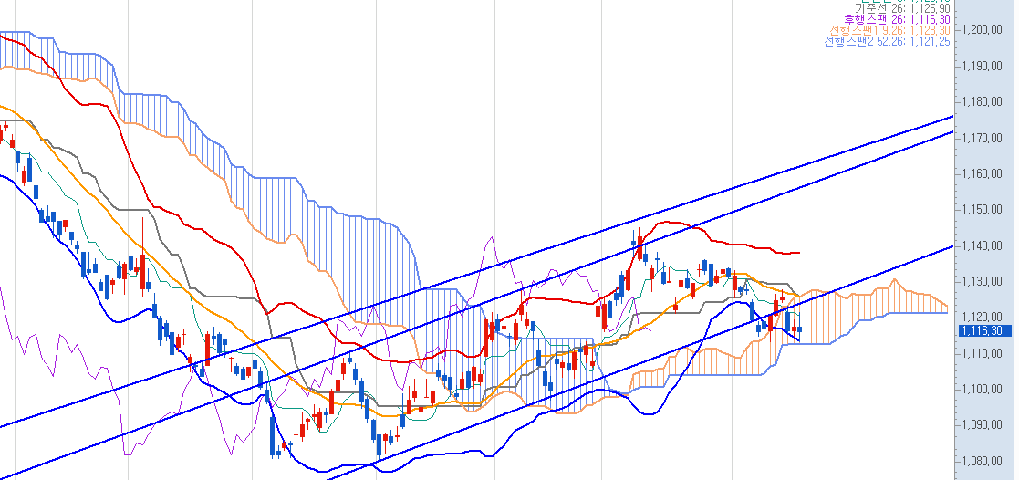 다음주의 흐름은 일봉으로는 괴로울 수 있어 보입니다.