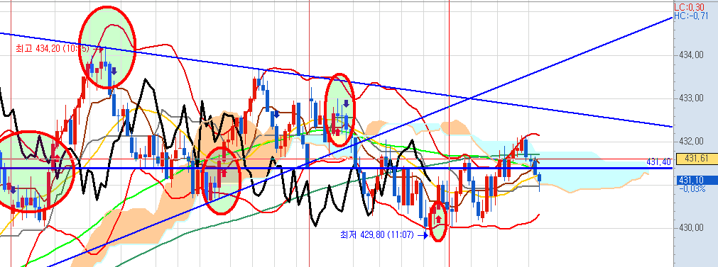 장 초반 어제 고점도 넘어섰으나 어제 저점도 하회하기도 해서