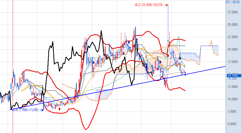 14.5달러 부근에 지지선이 지나고 있습니다.